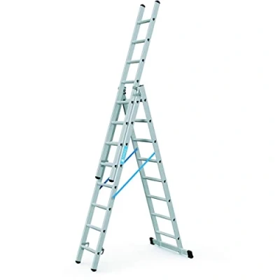 General description This Zarges D-Rung Combination Ladder is a versatile and robust ladder that can be used as a triple or double extension ladder and an ‘A’ frame ladder. It features lockable ladder sections to prevent collapsing during use and is equipped with anti-splay perlon straps for added safety. The comfortable D-shaped rungs and a stabiliser bar enhance stability during operation. Technical specifications Number of Rungs: 3 x 8 Ladder Length: 3-Part Single Ladder: 5.25m 2-Part Single Ladder: 3.85m Closed Length: 2.42m Horizontal Stabiliser Bar: 0.9m Stile Depth: 68mm Weight: 16.3kg Rating: 150kg Other information All sizes conform to EN131 professional standards. 10-year guarantee.
