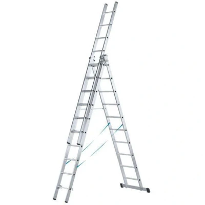 General description This Zarges Skymaster™ Trade Combination Ladder is a versatile 6-in-1 ladder that can be used as a single, double, or triple extension ladder, trestle step, ‘A’ frame ladder, and is suitable for use on steps and stairs. It is designed for professional use, ensuring safety and stability during various applications. Technical specifications Number of Rungs: 3 x 7 Ladder Length: 3-Part Single Ladder: 5m 2-Part Single Ladder/Stepladder with Push-On Section: 3.6m Closed Length: 2.2m Stabiliser Bar Width: 0.9m Weight: 15kg Rated for a maximum load of 150kg Installation Lockable ladder sections and a rigid aluminium locking bar prevent collapsing during use. Includes an extra wide stabiliser bar on the bottom section for enhanced stability. A wall wheel assembly is included at the top of the upper section for easy maneuverability. Usage Can be used in multiple configurations: single, double, triple extension, trestle step, and ‘A’ frame. Suitable for use on steps and