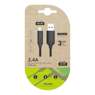 Zarivy BLACK nylon braided cable (USB A TO MICRO USB) 1m: Rugged and stylish, this offers durability style, ideal for charging transferring data efficiently.