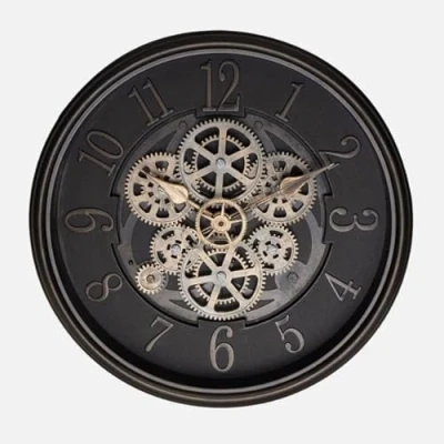 Zarivy Brown Wall Clock 40x40x7 cm with Moving Gears, Estandar