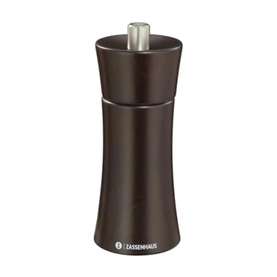 Very beautiful pepper or salt mill from the Zassenhaus brand from the Frankfurt collection The mill is made of beech wood in the colour wenge stained with a size of 14 cm Your patented precision grinder made of high-performance ceramic is harder than steel, wear and corrosion free It crushes pepper, salt, spices such as chilli peppers, cumin or coriander according to your taste You have the choice between six levels, from ultra-fine to extra coarse to adjust the grinding