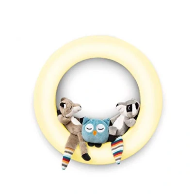 𝗠𝘂𝗹𝘁𝗶𝗰𝗼𝗹𝗼𝗿 𝗡𝗶𝗴𝗵𝘁 𝗟𝗶𝗴𝗵𝘁 - Zazu Kids introduces their new LED smart night light featuring a ring shaped wall lamp with color changing options and 3 magnetic attachable soft animal toys. 𝗠𝗼𝘁𝗶𝗼𝗻 𝗦𝗲𝗻𝘀𝗼𝗿 - No need to press buttons or keep tabs on a small remote control. This LED wall light is operated by using hand gestures such as waving, hovering or tapping. 𝗔𝗱𝗷𝘂𝘀𝘁𝗮𝗯𝗹𝗲 𝗕𝗿𝗶𝗴𝗵𝘁𝗻𝗲𝘀𝘀 - Change the lamp color with a simple tap. LED color options include: white, orange, red, pink, blue, turquoise, green and multi-colour. The brightness of the light is fully adjustable. 𝗔𝘂𝘁𝗼𝗺𝗮𝘁𝗶𝗰 𝗦𝗵𝘂𝘁-𝗼𝗳𝗳 - The light can be programmed to automatically turn off after 45 minutes, to preserve battery life and keep your child asleep without any distractions. If your child sleeps well with light, you can also choose to keep the light on all night. 𝗦𝗼𝗳𝘁 𝗣𝗹𝘂𝘀𝗵 𝗠𝗮𝗴𝗻𝗲𝘁𝗶𝗰 𝗧𝗼𝘆𝘀 - Fay the Fox, Rex the Racoon and Otis the Owl are 3 small magnetic soft plush toys that easily click on to the lamp to watch over your child at night.