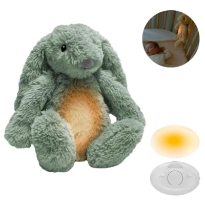 Zazu Ro The Rabbit Baby Sleep Aid with Rechargeable Battery Multi Colour Night Light & Soothing Sounds, Wine Sensor, Auto Shut Off and USB C Charging Cable (Green)