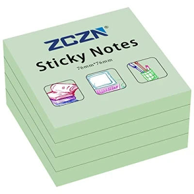 ZCZN 76 x mm Sticky Notes, 100 Sheets/Pad, 4 Pads, Light Green