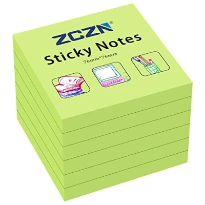 ZCZN Sticky Notes 76 x mm, 6 Pads, 80 Sheets/Pad, Green