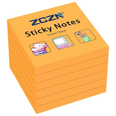 ZCZN Sticky Notes 76 x mm, 6 Pads, 80 Sheets/Pad, Orange