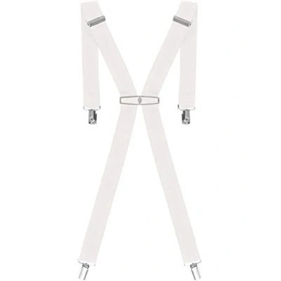 Ze ENZO MB01 Heavy Duty Men Braces 4 Buckles Stripe X Back 8 Colors Durable Elastic Adjustable Suspenders Strong Metal Clips One Size White