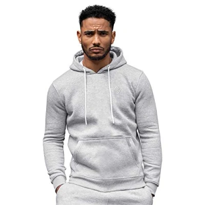 Ze ENZO Mens Hoodie Pullover Hooded Sweatshirt Fleece Warm Hoody Top Grey XL