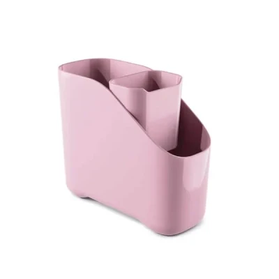 Keep your kitchen sink area clean and organised with the Zeal Melamine Rose Pink Large Sink Tidy with Inner Bucket. This thoughtfully designed sink organiser offers enough space to hold your essential washing-up items, including a standard washing-up liquid bottle, sponges, and cleaning cloths. The removable inner compartment is perfect for storing taller cleaning tools like brushes and bottle cleaners, ensuring everything stays neatly in place.Expertly crafted to optimise counter space, this sink tidy is made from high-quality, BPA-free polished melamine, known for its durability and resistance to odours and stains. The material also promotes quick drainage and drying, keeping your sink area hygienic and tidy.Designed in the UK and with a stylish two-tone finish, the Zeal sink tidy combines functionality, durability, and style and measures 18(H) x 21.7(W) x 9.6(D)cm.