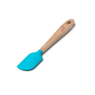 Zeal Silicone Spatula with Ash Wooden Handle 19cm Non Scratch, Heat Resistant Cooking & Baking for Mixing, Scraping Folding (Aqua Blue)