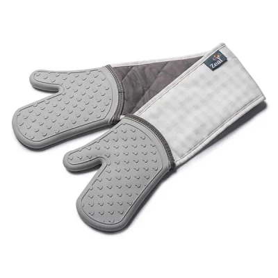 Zeal Steam Stop Silicone Double Oven Glove Gingham French Grey
