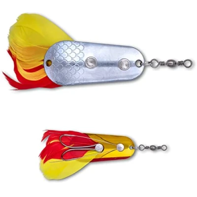 Ideal running behaviour: this spoon impresses with its first-class running behaviour Super casting properties: wide casts are no longer a problem with this spoon Sharp drilling: thanks to the use of a high-quality drilling, cutters are a thing of the past Herbproof: the use of imitation feathers prevents the collection of herb effectively 22 g 5.2 cm silver/gold/red sinking