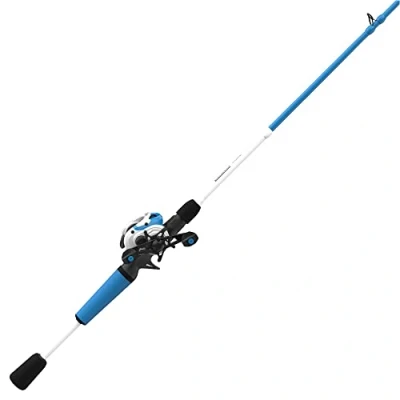 Zebco Roam Baitcast Reel and Fishing Rod Combo, 6 Foot Inch 2 Piece Fiberglass Pole with Split Grip MaxTac Handle, Lightweight Graphite Frame, Right Hand Retrieve, Blue