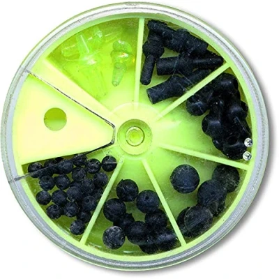 Rubber beads and leger beads in a practical box.