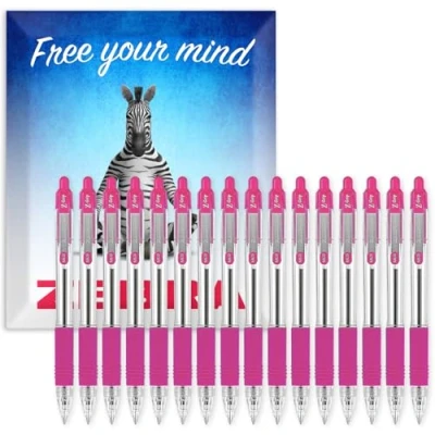 Zebra Pen Z Grip Retractable Ballpoint Pens 1.0mm Nib Pack of 16 In Cardboard Gift Box School, Writing, Work, Office (Pink)