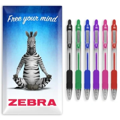 Zebra Pen Z Grip Retractable Ballpoint Pens 1.0mm Nib Pack of 6 In Cardboard Gift Box School, Writing, Work, Office (Assorted)