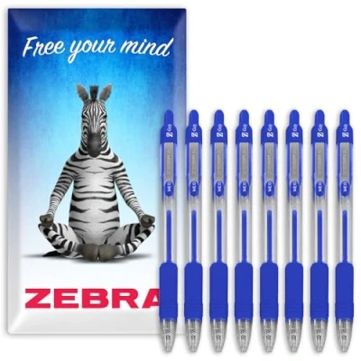 Zebra Pen Z Grip Retractable Ballpoint Pens 1.0mm Nib Pack of 8 In Cardboard Gift Box School, Writing, Work, Office (Blue)