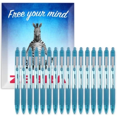 Zebra Z Grip Smooth Ink Retractable Ballpoint Pen 1.0mm Nib Pack of 16 Pens In Gift Box Packaging (Light Blue)