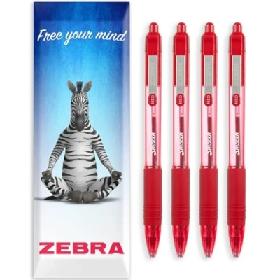 Zebra Z Grip Smooth Ink Retractable Ballpoint Pen 1.0mm Nib Pack of 4 Pens In Gift Box Packaging (Red)