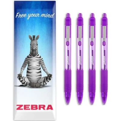 Zebra Z Grip Smooth Ink Retractable Ballpoint Pen 1.0mm Nib Pack of 4 Pens In Gift Box Packaging (Violet)