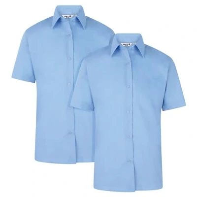 ZECO (2 Pack) Girls Short Sleeve, Non Iron School Blouses Blue