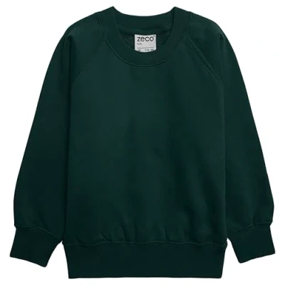 ZECO Boys Girls Unisex Crew Neck Sweatshirt School Uniform Kids Jumper (2 16 Years) Bottle Green