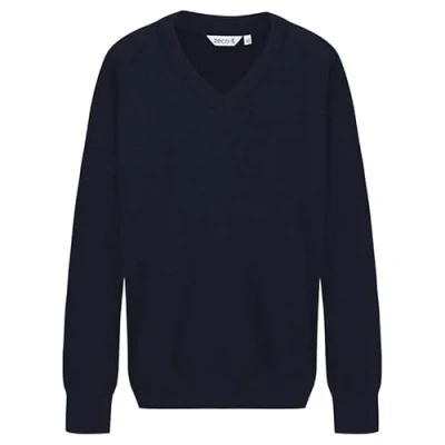 ZECO Unisex Kids Cotton Mix Knitted V Neck School Jumper (Kids: 3 13+ Years, Adults: XS to 3XL) Navy Blue