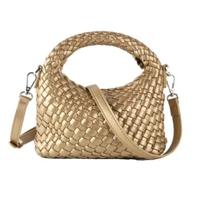 ZEDIUH Woven Purses For Women, Small Crossbody Tote Bag Weave Handbag Girls Purses, Detachable Shoulder Strap Shoulderbag, Gold