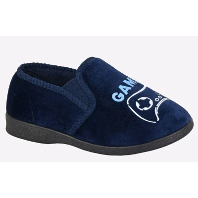 Zedzzz Gamer Boys Velour Full Slippers Navy Blue UK 11 (Junior)