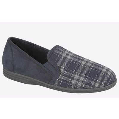 Slip into sumptuous comfort with these Zedzzz men's slippers, boasting a classic navy check print, with a padded footbed, and an easy wear slip on silhouette.- Textile / Felt upper - Twin gussets for easy wear - Slip on silhouette - Textile Covered Injected sole