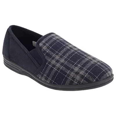 AmazonMens twin gusset slippers Check textile upper Textile lining Flexible outsole Slip on style