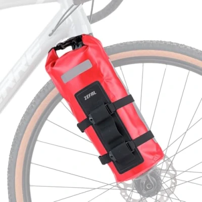 Bicycle fork bag waterproof 4L: this product contains the Z Adventure Dry Bag 4L and the Z Adventure Cage. The Z Adventure Dry Bag 4L is a waterproof bag designed for bike packing, ultra cycling, trekking or whatever you want to call your next cycling adventure. It is intended as an addition to the Z Adventure Cage, but is not dependent on it. Versatile use for bike packing: this bag can be used as a bicycle fork bag, pannier rack bag or even in combination with a fastening strap as a handlebar bag. Thanks to the generous storage space, you can travel efficiently with light luggage without sacrificing driving comfort. Thanks to its roll closure, it is particularly suitable for storing compressible items, such as sleeping material and additional clothing. Designed to withstand the most extreme conditions, the bike bag is made of high-quality waterproof materials that optimally protect your equipment from wind and weather. The bag comes with two adjustable Velcro straps that hold the bag securely in place, allowing you to safely transport your gear even on the roughest roads. The Z Adventure Cage is a universal holder for water bottle and waterproof bag. The robust technical polyamide holder attaches to the attachment points of your bike frame or fork and holds your cargo securely in place even in rough terrain. Thanks to the 3 screws (included) the Z Adventure Cage can be adapted to all types and sizes of frames, with the possibility of using only 2 screws. Technical data: weight bag: 160 g & weight Z Adventure Cage: 88 g – Bag size: Ø 130 mm x 285 mm & Size Cage: 81 x 94 x 230 mm – Material bag: Polyester 420D TPU and material cage: injected carrier made of fibre-reinforced polypropylene and Hypalon webbing – Volume: 4L – Max. Load: 2.5 kg. Screws included: yes