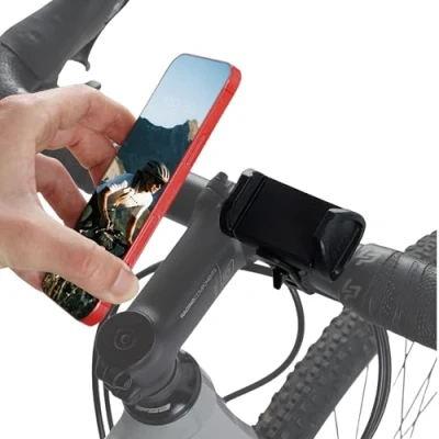 Universal phone holder compatible with all smartphones and all standard bicycle handlebars Smartphone is quckly and easily attached and removed Soft contacts and silicone fastening absorb vibrations and protect the smartphone Easy to switch between landscape and portrait mode Compatible with all smartphones with a width of 60mm to 100mm