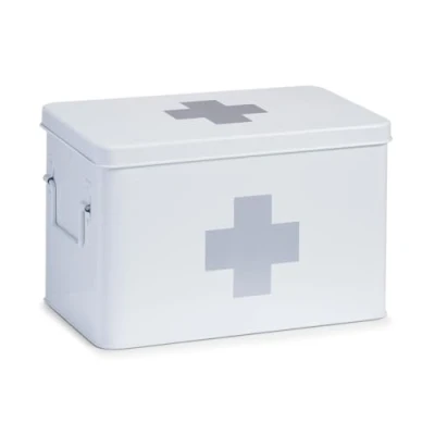 Medicine box Galvanised and powder coated Removable metal insert Divided into 5 compartments Side handles