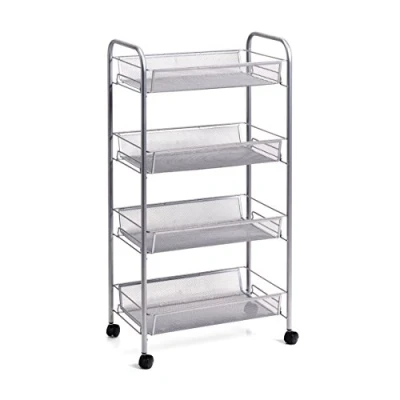 Regale, locker, organizer on wheels Four large storage shelves, made of solid steel mesh Four plastic wheels for easy shelf movement Versatile use in the office and at home Practical handles, stable construction, easy to clean