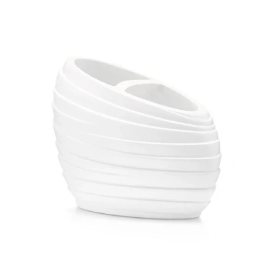 Modern toothbrush holder in abstract design Material: plastic. Other matching bathroom accessories available in the same design Has two chambers. Dimensions: approx. 12.5 x 6.5 x 8.9 cm