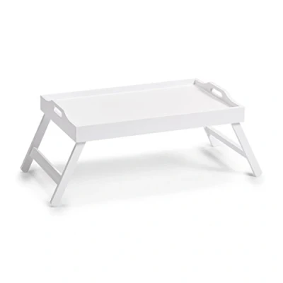 Timeless and modern bed tray. Material: MDF Has two handles and folding legs. Care instructions: can be wiped clean with a damp cloth. Dimensions: approx. 56.5 x 35.5 x 27 cm.