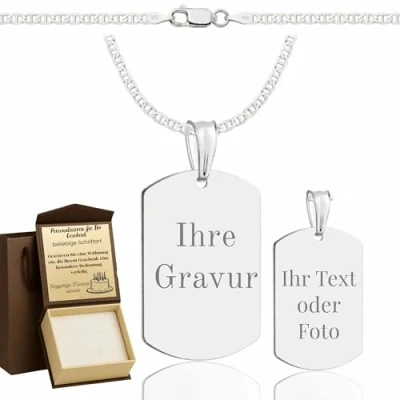 Robust mariner link necklace made of 925 sterling silver - high-quality men's necklace with classic Mariner link (anchor link) style, 2.6 mm wide, made of solid 925 silver - stylish silver chain for men with pendant. Sizes and weights for a perfect fit, lengths to choose from: 45 cm (approx. 3.5 g), 50 cm (approx. 3.7 g), 55 cm (approx. 4.3 g) and 60 cm (approx. 5.5 g); dog tag pendant approx. 1.7 g. Dimensions approx. 2.8 × 1.5 cm – Personalised men's necklace, ideal for comfort and style. Engravable dog tag pendant for individuality – solid dog tag style pendant made of 925 silver with generous surface for engraving: name, date or short message – personalised necklace for men with name or symbol. Suitable for everyday use and skin-friendly: men's necklace, 925 silver, nickel-free and hypoallergenic, polished for radiant shine, robust enough for everyday wear and stylish enough for special occasions. Ready to give as a gift with personal engraving option - delivered in elegant gift box, including option for engraving. Perfect gift idea for men: birthday, anniversary or simply express appreciation with jewellery.