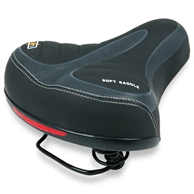 COMFORTABLE AND SHOCKPROOF DESIGN - This bike seat cushion features soft shockproof springs and a punching foam system, providing exceptional comfort and absorbing impact for a smoother ride. ERGONOMIC AND DURABLE CONSTRUCTION - Designed with an ergonomic shape and durable materials, this bike seat ensures durability while reducing pressure on sensitive areas for long lasting comfort. REFLECTOR FOR SAFETY - Equipped with a built-in reflector, this bicycle saddle enhances visibility during night rides, ensuring a safer cycling experience in low light conditions. VERSATILE FOR ALL BIKE TYPES - Suitable for cruisers, road bikes, mountain bikes, BMX, and touring bikes, this cycling saddle is perfect for every type of rider, whether commuting or enjoying leisure rides. EASY TO INSTALL AND ADJUST - This bike seat is simple to fit and adjust, making it compatible with most standard bicycles, offering a hassle free upgrade for a more comfortable ride.