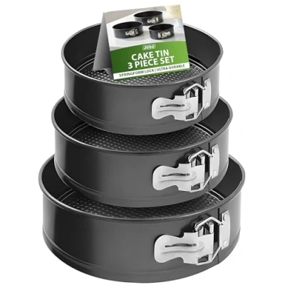 THREE VERSATILE CAKE TINS - Includes 22 cm, 24 cm, and 26 cm tins, giving you the flexibility to bake a range of cake sizes for any occasion. Ideal for layered cakes, cheesecakes, sponges, and more. SPRINGFORM DESIGN FOR EASY RELEASE - Each tin features a secure springform mechanism and a removable base to release your cakes cleanly. No need to worry about damaging delicate bakes when removing from the tin. NON-STICK COATING FOR EFFORTLESS CLEANING - The high-quality non-stick surface ensures cakes slide out smoothly without leaving residue. Cleaning is quick and easy with no scrubbing needed. METAL HANDLES FOR A FIRM GRIP - Equipped with metal side handles that offer a secure grip when placing in or removing from the oven. Makes handling hot tins safer and more convenient. DURABLE & OVEN SAFE CONSTRUCTION - Made from heat-resistant, warp-proof carbon steel for reliable, even baking. Suitable for use in all standard ovens and built to withstand frequent use., Weight: 1.54984970186 Pounds, Manufacturer: ZENO