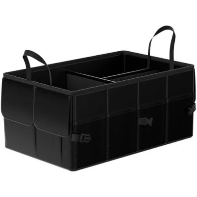 KEEP YOUR CAR BOOT ORGANISED - This heavy-duty car boot organiser helps keep your groceries, tools, and travel essentials neatly stored, reducing clutter and preventing items from rolling around. COLLAPSIBLE & SPACE-SAVING DESIGN - The foldable design allows for easy storage when not in use, making it perfect for keeping your car tidy without taking up unnecessary space. MULTI-COMPARTMENT STORAGE - Features multiple sections for better organisation, allowing you to separate shopping bags, emergency supplies, car accessories, and more. NON-SLIP BASE & SECURING STRAPS - Designed with anti-slip material and adjustable securing straps, this trunk organiser stays in place, preventing movement during car journeys. DURABLE & PORTABLE FOR ALL VEHICLES - Made from strong and durable materials, this boot tidy is built to last and can be easily carried between vehicles, making it ideal for cars, SUVs, vans, and more.