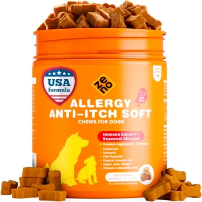 ZENO Dog Allergy Chews 150Pcs Supplements for Itchy Skin and Paw Licking Relief US Formula with Probiotics, Natural Ingredients & Vitamins Beef