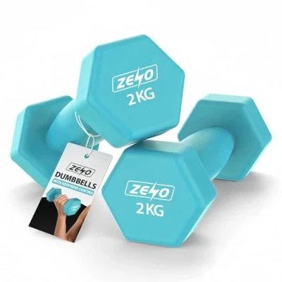 ZENO Dumbbells Set Of 2 for Women Hexagon Neoprene Weights Hand Anti Slip & Sweat Resistant Dumbells (2 X 2KG Teal)