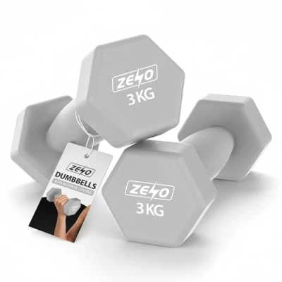 ZENO Dumbbells Set Of 2 for Women Hexagon Neoprene Weights Hand Anti Slip & Sweat Resistant Dumbells (2 X 3KG Grey)