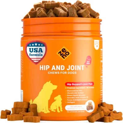 ZENO Glucosamine HCL & Hip and Joint Chews for dogs 150 pcs Advanced Support With MSM Green Lipped Mussel Beef