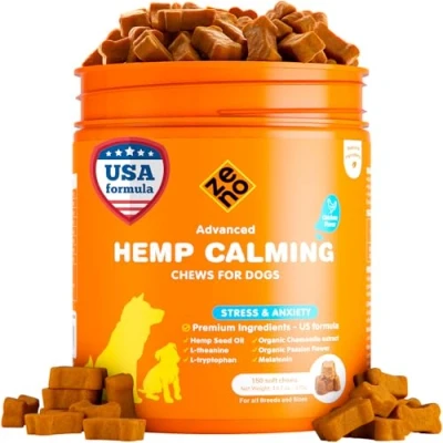 ZENO Hemp Calming Chews for Dogs Anxiety 150 pcs Dog Relief Melatonin Stress, Travel, Check up, Barking or Grooming Chicken