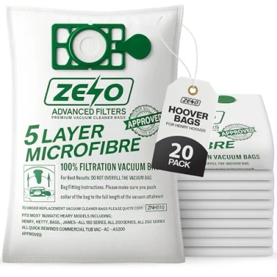 ADVANCED 5-LAYER FILTRATION SYSTEM - These vacuum bags feature a multi-layered HEPA-style design that captures fine dust, allergens and debris. Enjoy deeper, more hygienic cleans with every vacuum session. COMPATIBLE WITH HENRY, HETTY AND NUMATIC VACUUMS - Zeno hoover bags are fully compatible with popular models such as Henry Hoover, Hetty Hoover, and other vacuums that use NVM-1CH or 907075 bags. They fit perfectly and perform reliably every time. STRONG AND TEAR-RESISTANT BUILD - Each bag is crafted from high-strength material that resists tearing and bursting. You can vacuum confidently knowing these bags will handle large loads with ease. MESS-FREE REPLACEMENT AND DISPOSAL - Changing bags is quick, clean and hassle-free. Simply remove and dispose without worrying about dust clouds or leaks. IDEAL FOR HOMES WITH PETS OR ALLERGIES - Designed to trap pet hair, pollen and dust particles. These bags help create a fresher and healthier environment throughout your home., Manufacturer: ZENO