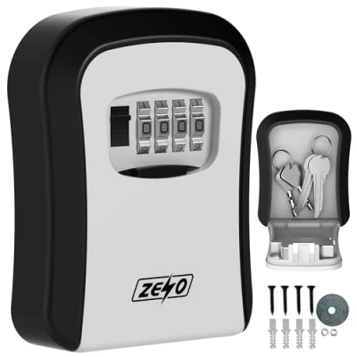 ZENO Key Safe Wall Mounted Lock Box Outdoor Police Approved Outside Great for Airbnb Home Garage Office School 4 Digit Pin Waterproof Black/Grey