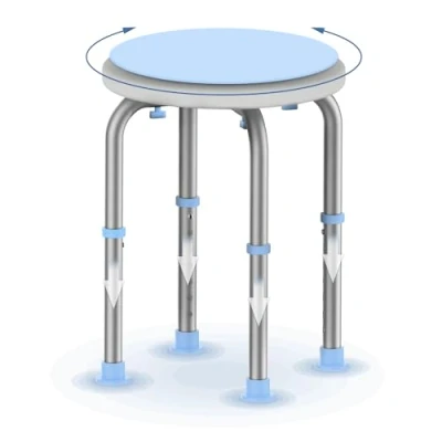 360° ROTATING SEAT FOR EASY MOVEMENT - Enjoy enhanced comfort and flexibility in the shower with a full rotating seat that allows effortless turning and access without needing to twist your body. 7 ADJUSTABLE HEIGHT SETTINGS - Tailor the height of the shower stool to your individual needs with seven secure levels, making it perfect for users of different heights and mobility levels. LIGHTWEIGHT YET STURDY ALUMINIUM FRAME - Crafted from rust-resistant aluminium, this bath chair combines lightweight portability with heavy-duty strength, supporting up to 135kg with ease. NON-SLIP RUBBER FEET FOR STABILITY - Designed with safety in mind, the non-slip feet offer secure grip on wet bathroom floors to minimise the risk of slipping during use. IDEAL FOR ELDERLY OR THOSE RECOVERING FROM SURGERY - This shower chair offers dependable bathing support for the elderly, disabled, or anyone in recovery, helping users feel more confident and independent.