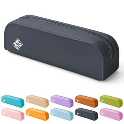 ZENO Silicone Pencil Case Aesthetic Pouch for Women & Teens Cute Pen Case, Black Make Up Bag, Travel Organiser, Small Stationery Pouch, School Sand